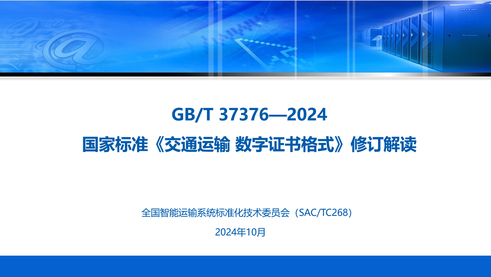 国家市场监督管理总局(国家标准化管理委员会)2024年第17号中国国家标准公告,批准发布了国家标准《交通运输 数字证书格式》(GB/T 37376—2024),自2025年3月1日起实施。