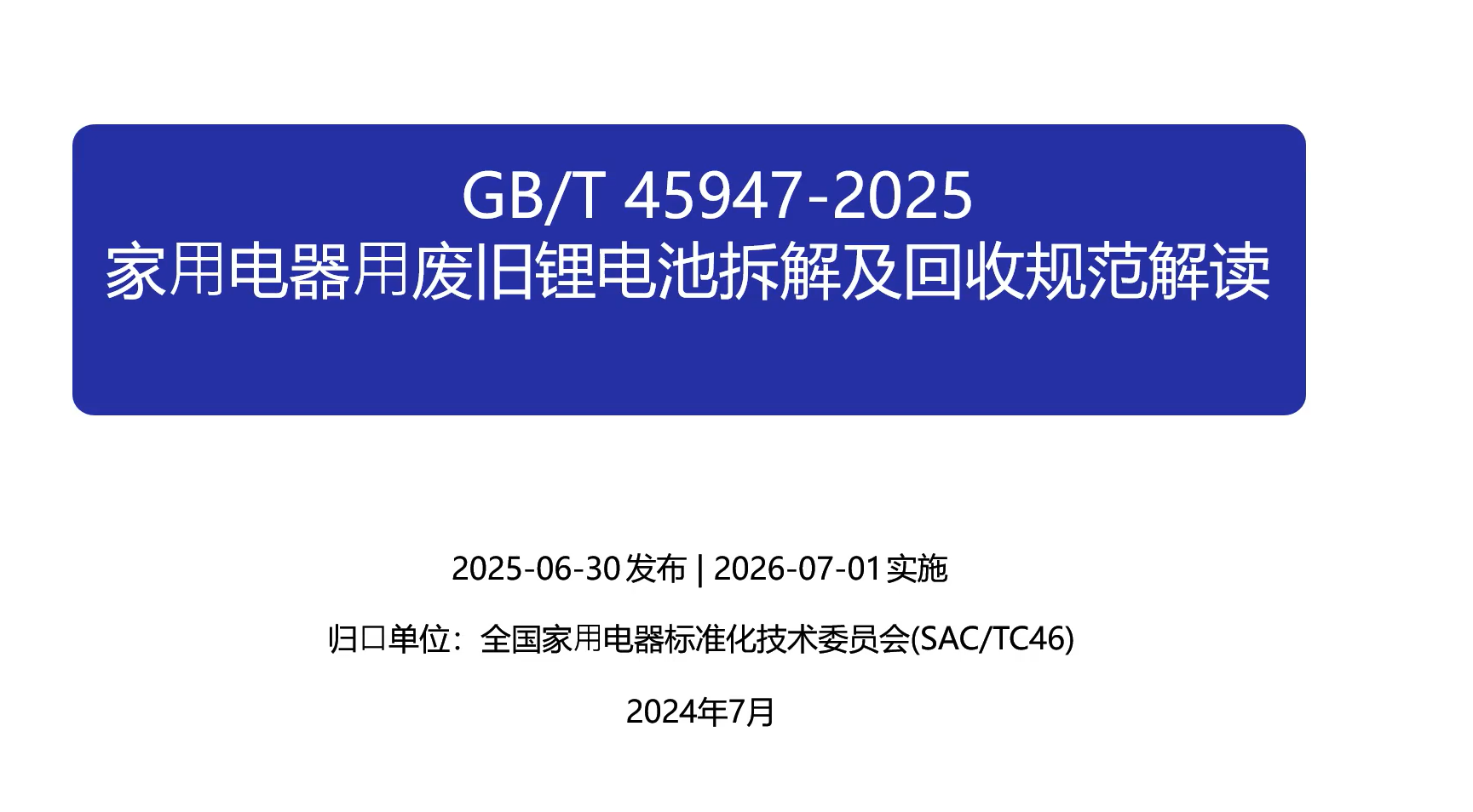 GB/T 45947-2025 家用电器用废旧锂电池拆解及回收规范