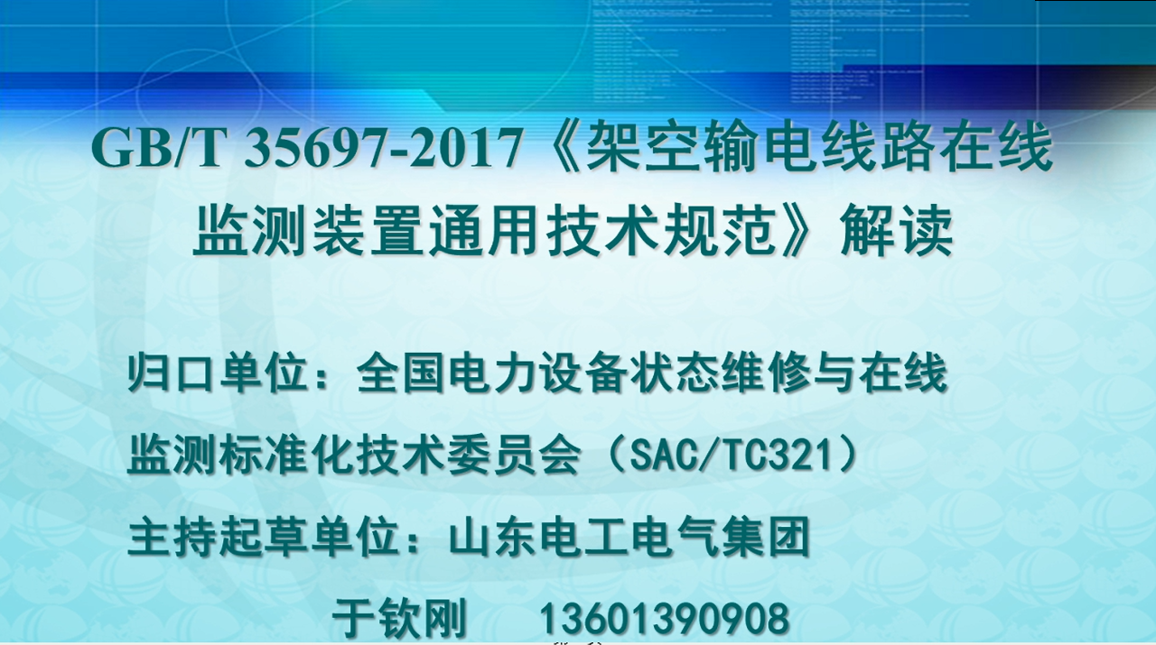 国家标准 GBT35697-2017《架空输电线路在线监测装置通用技术规范》规范了监测装置的分类与组成、技术要求、试验方法、检验规则等,用于指导装置的设计、生产、检测和应用,在输电线路物联网建设、智能运检、运行管理等方面具有重要作用。本视频主要对该标准的目的意义、标准体系内容、标准结构和内容、重要条文等内容进行了解读。
