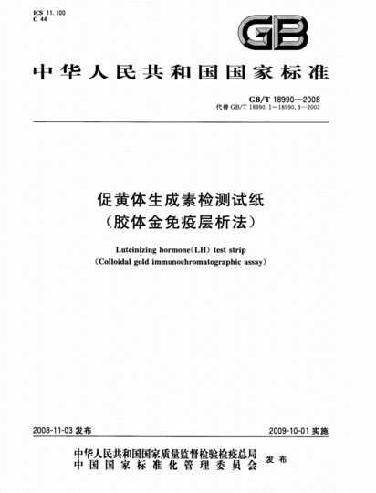 GB/T 18990-2008 促黄体生成素检测试纸(胶体金免疫层析法)