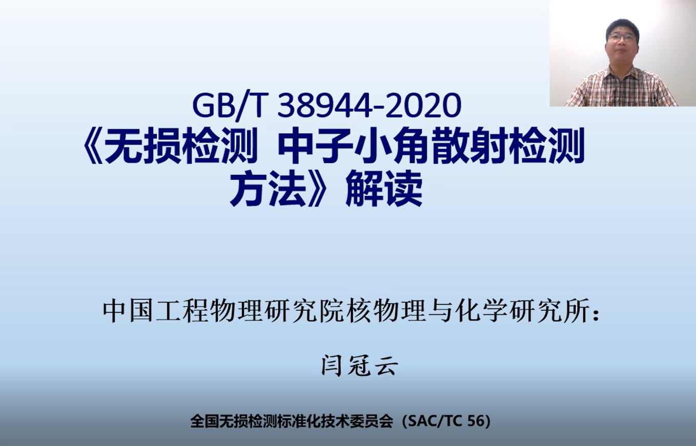 2020年12月,GB/T 38944-2020《无损检测 中子小角散射检测方法》正式实施。该标准牵头制订单位中国工程物理研究院核物理与化学研究所基于国内首个常态化运行的大型中子散射实验平台,开展了大量中子小角散射谱仪运行和实验工作。该标准第一起草人中国工程物理研究院核物理与化学研究所闫冠云老师从项目背景、基本原理和装置介绍、样品检测、数据处理等方法解读GB/T 38944-2020。